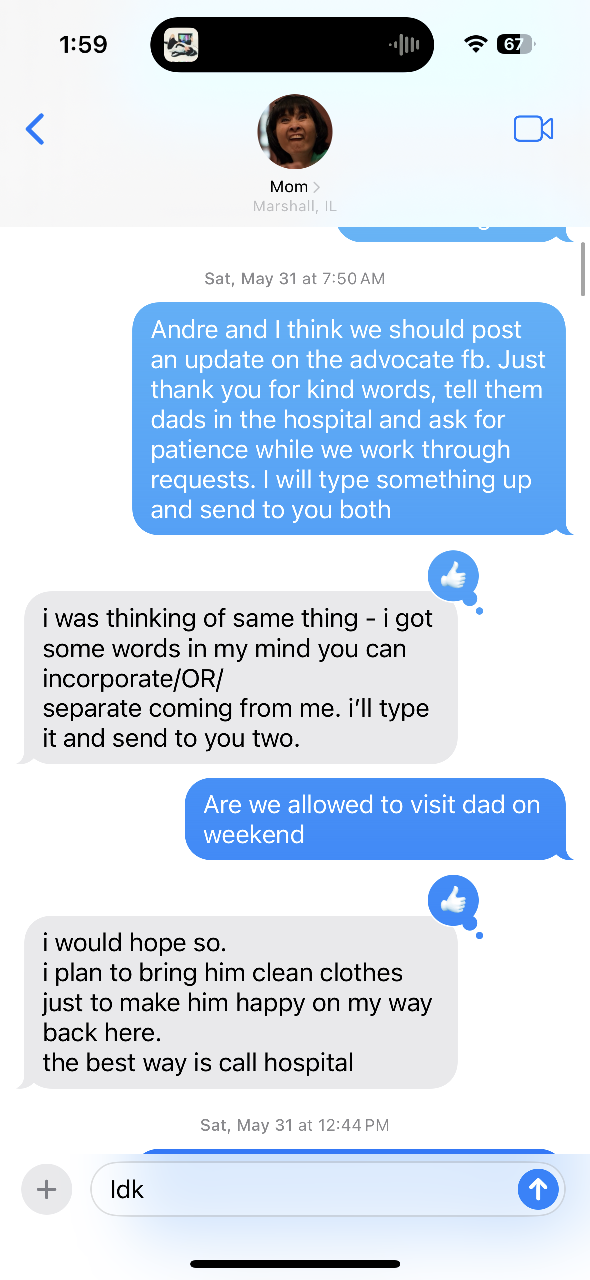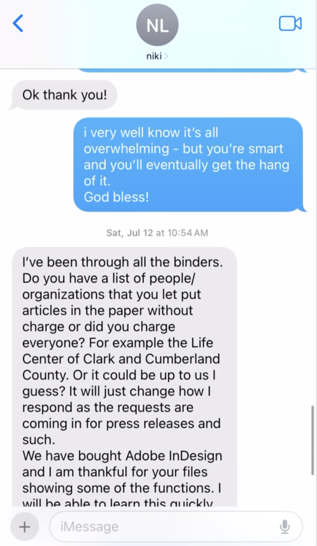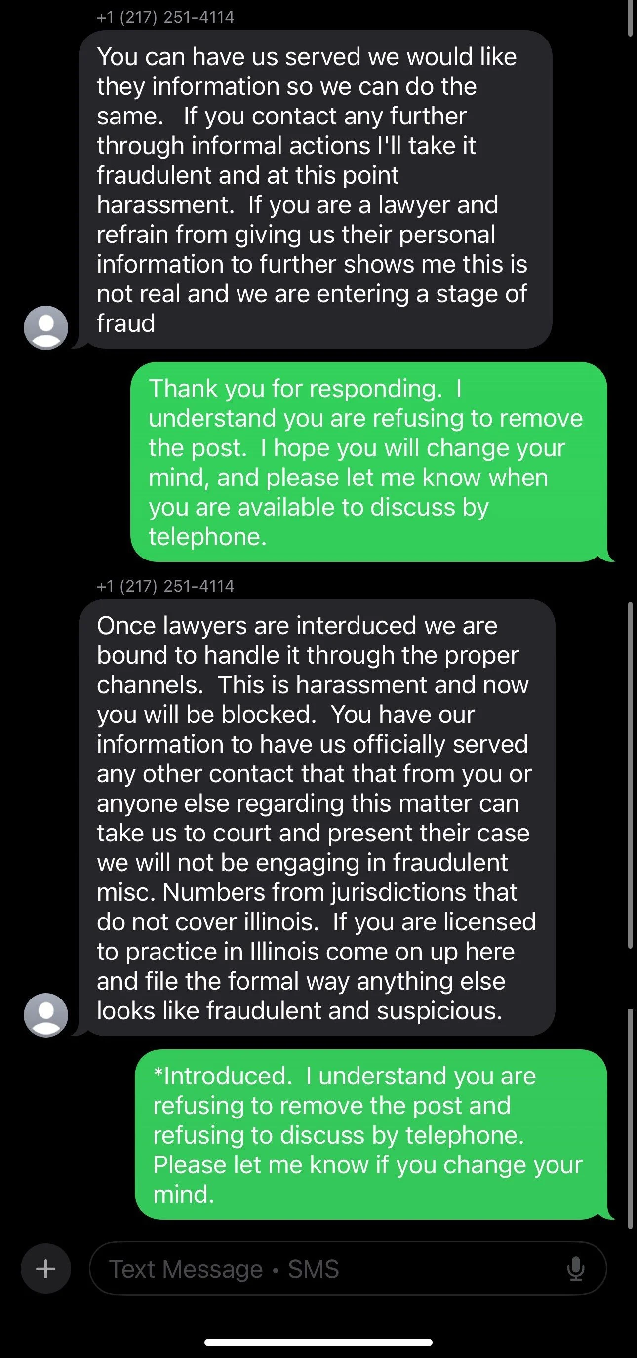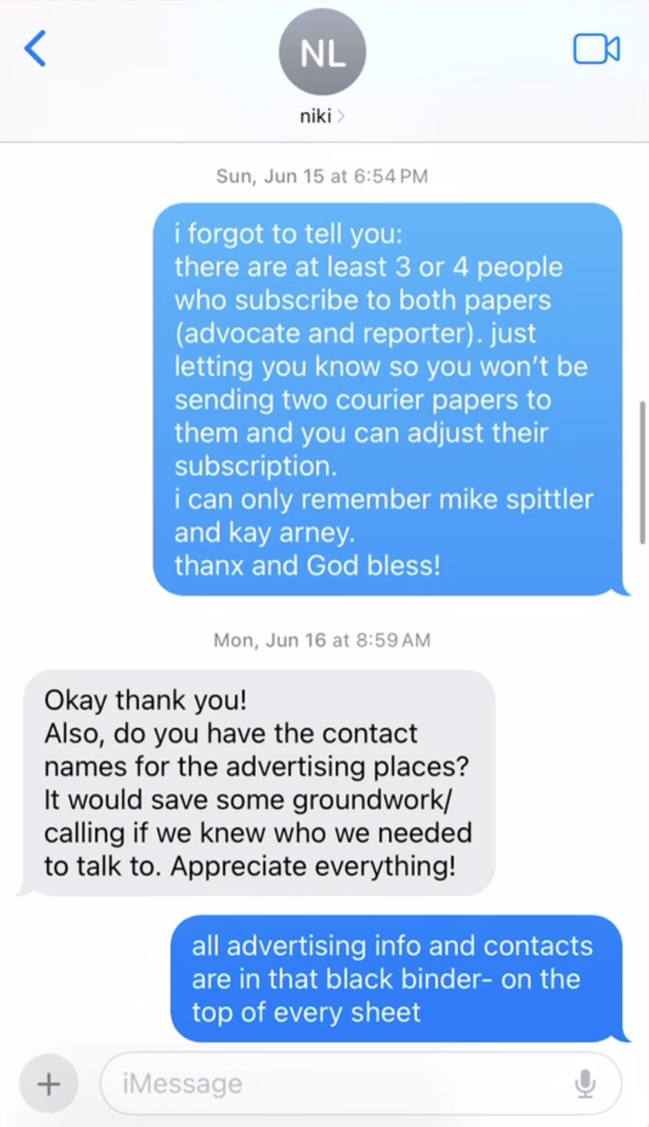 See below for further text message exchanges between other members of the Strohm family, Daniel Duzan, Niki Leinberger, and Stewart Rutledge (attorney).