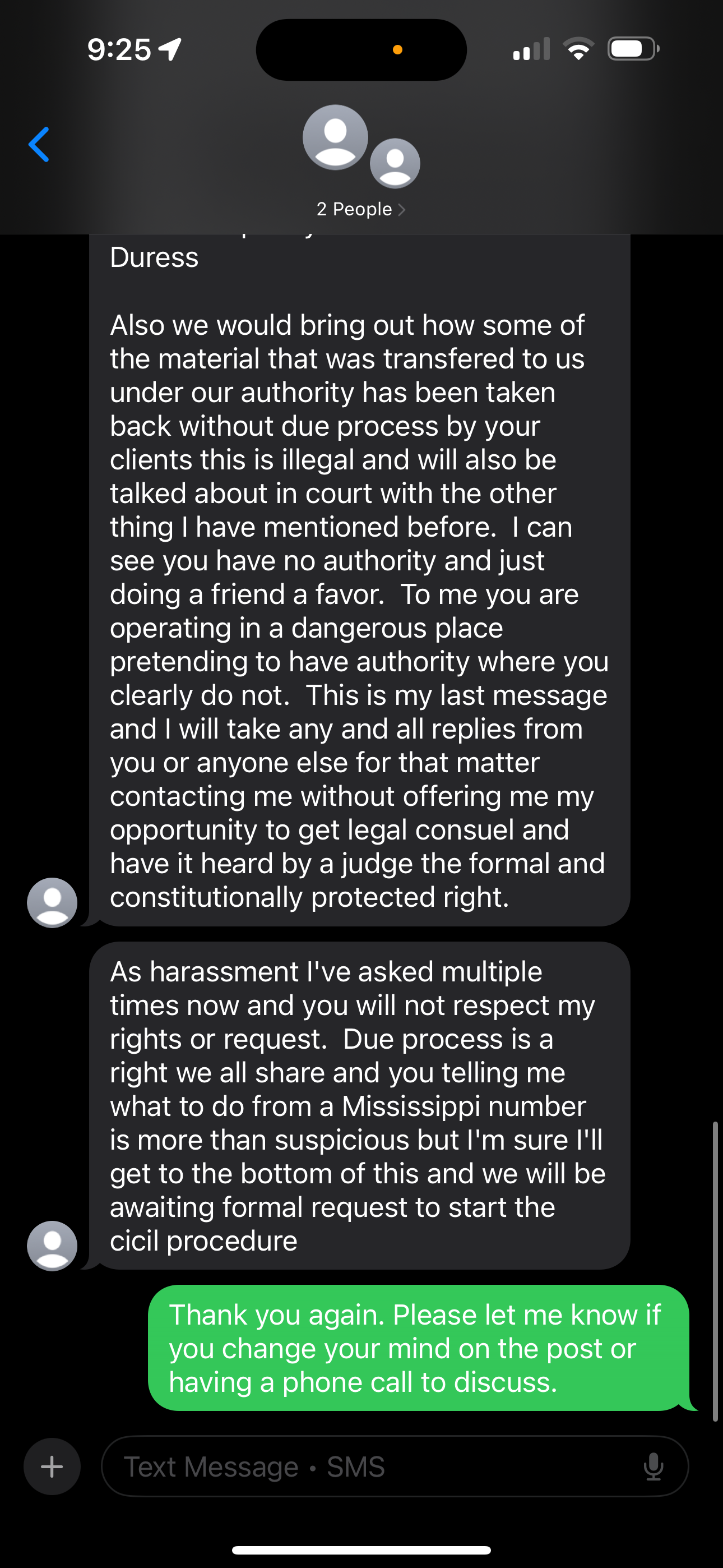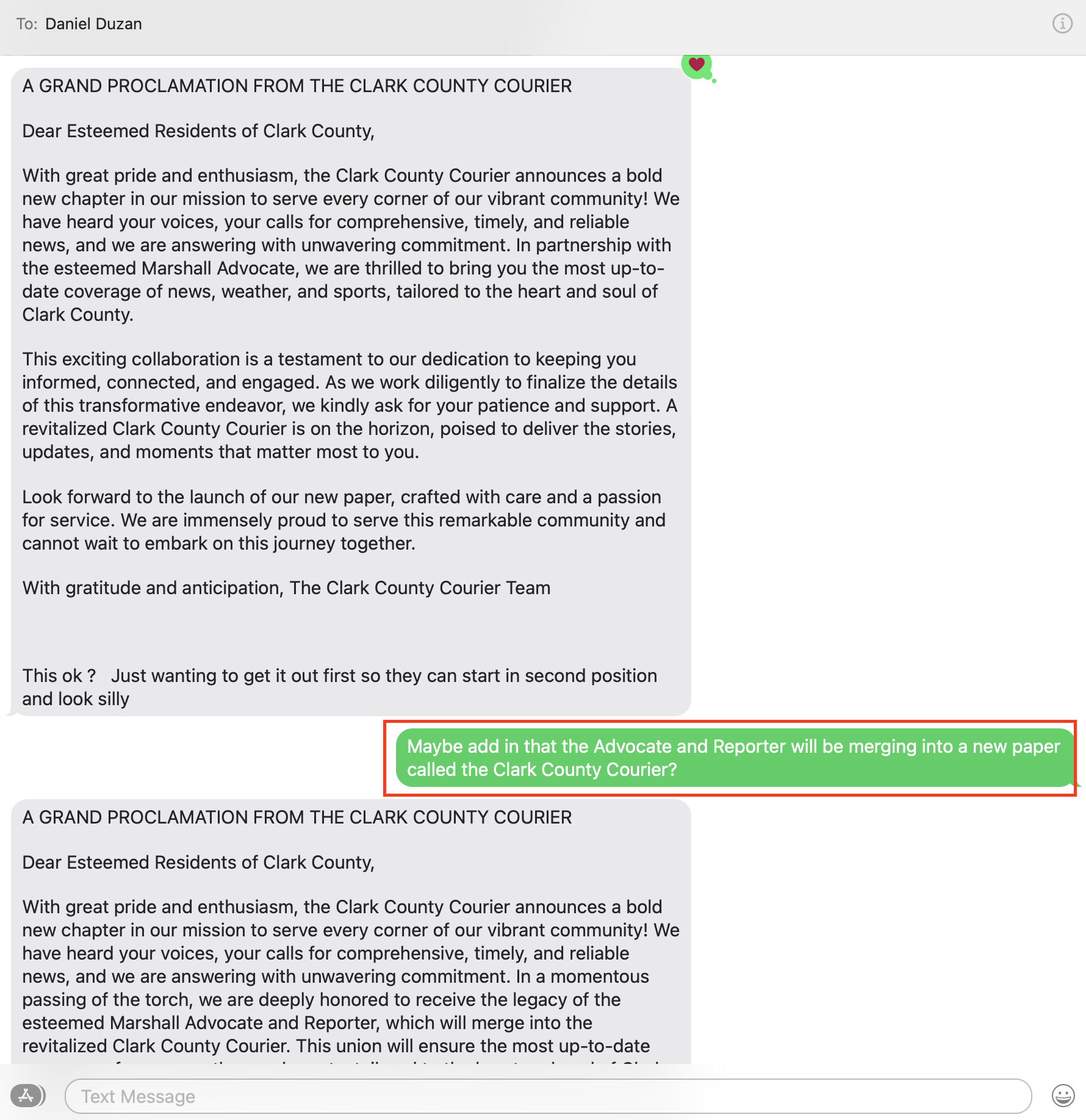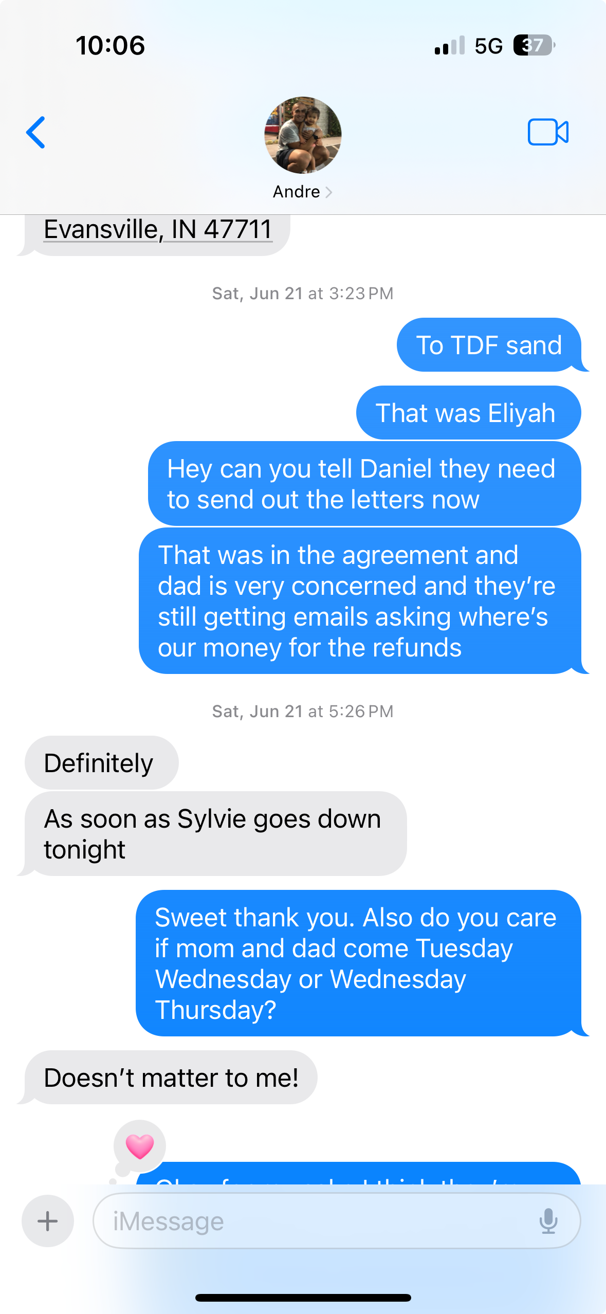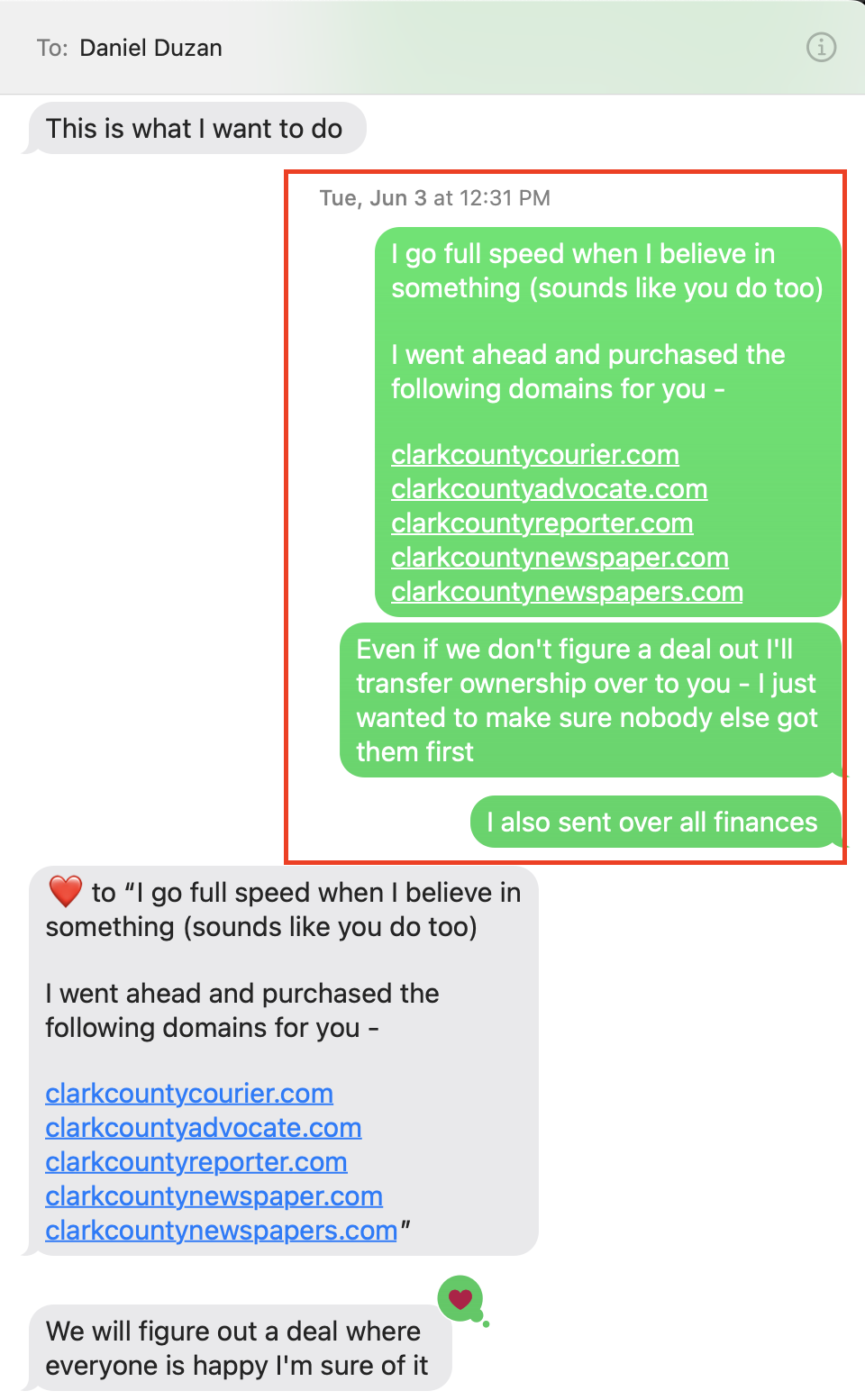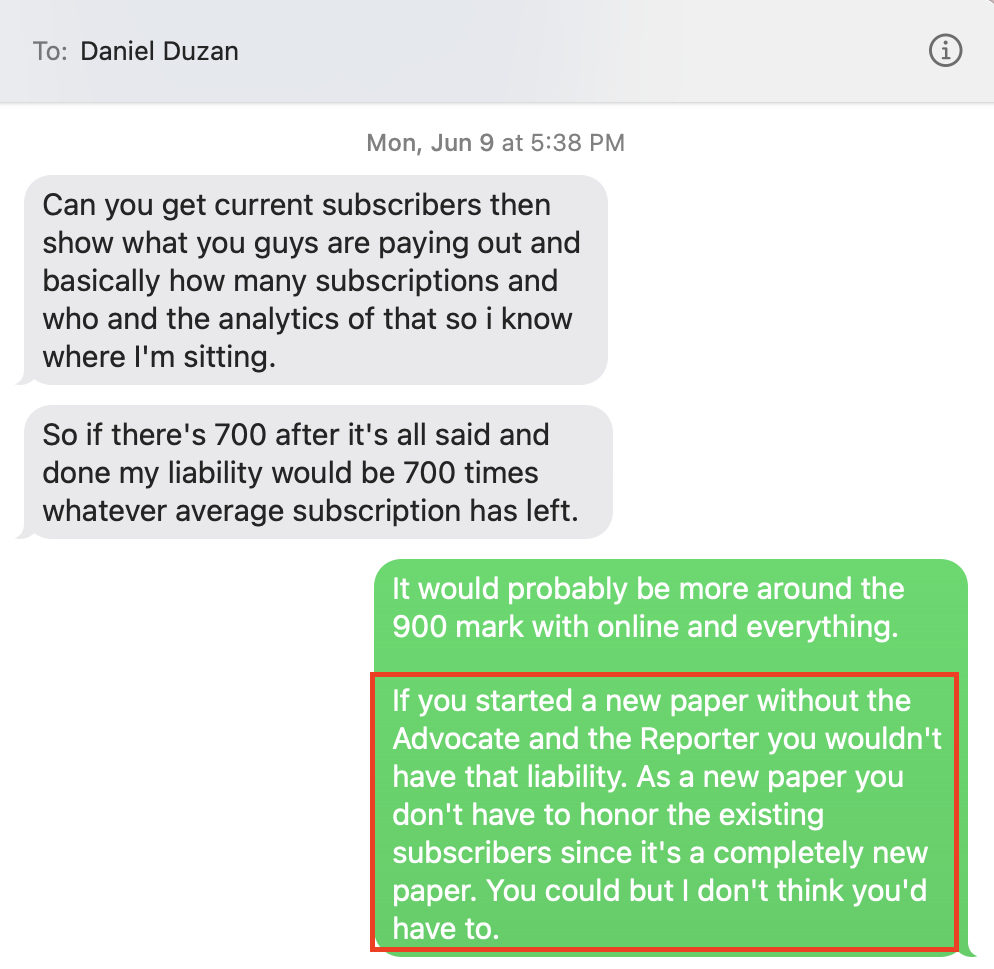Highlighted texts between Daniel Duzan & Dre Strohm